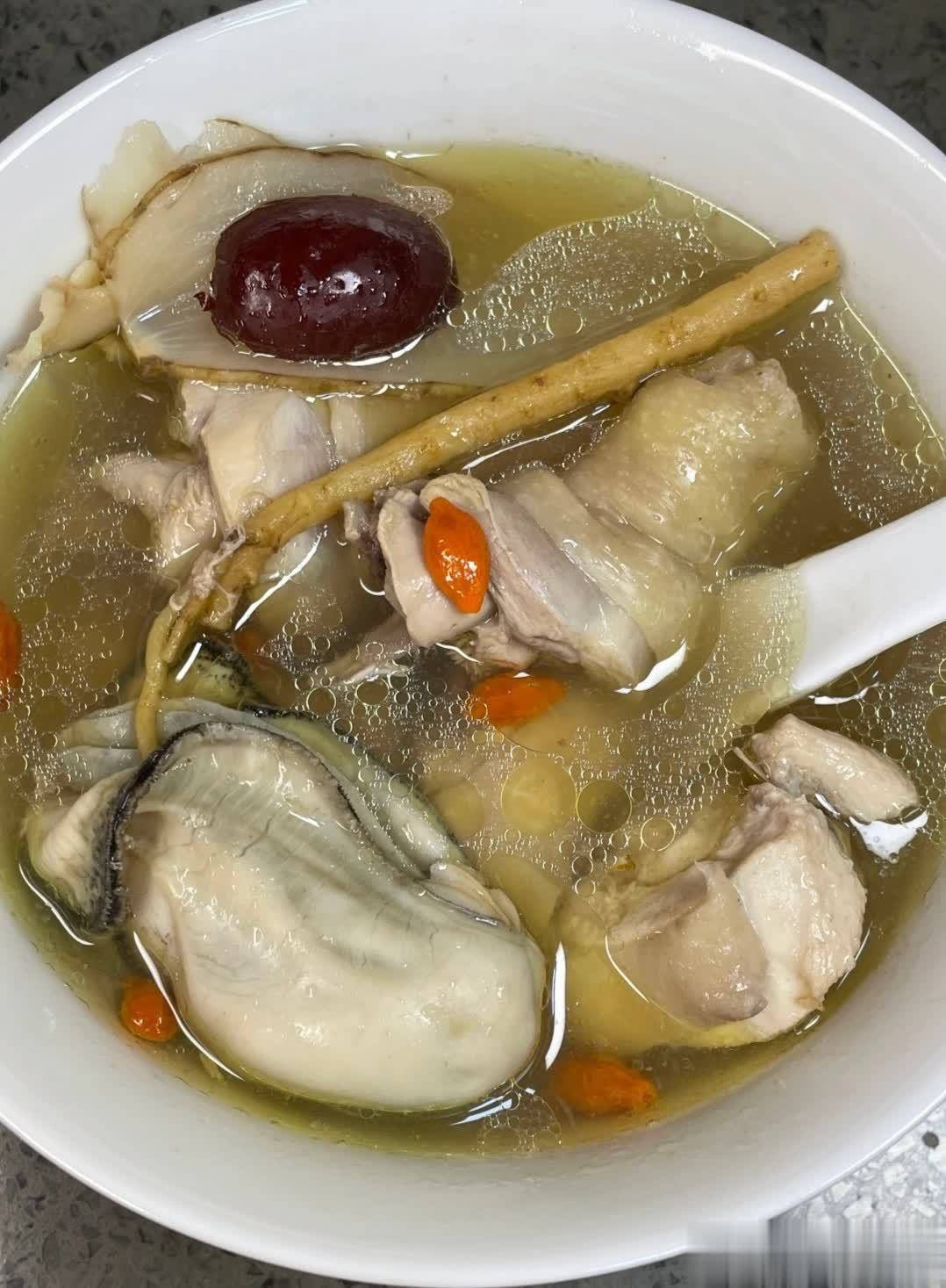生蚝是天然的“补锌神器”,锌含量远超其他食材,能提升男性精力、增强免疫力,改善疲劳乏力的状态;母鸡富含优质蛋白和多种氨基酸,能为身体补充能量,滋补气血;生姜和葱段不仅去腥,还能温胃散寒,避免生蚝的寒性对肠胃造成刺激。这道汤鲜香清甜,营养易吸收,每周喝1-2次,能快速补充身体所需营养,让活力满满。
