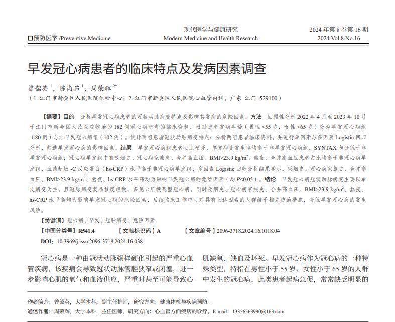 参考资料[1]曾韶英,陈尚茹,周荣辉.早发冠心病患者的临床特点及发病因素调查[J].现代医学与健康研究电子杂志,2024配资官网app,8(16):118-121.