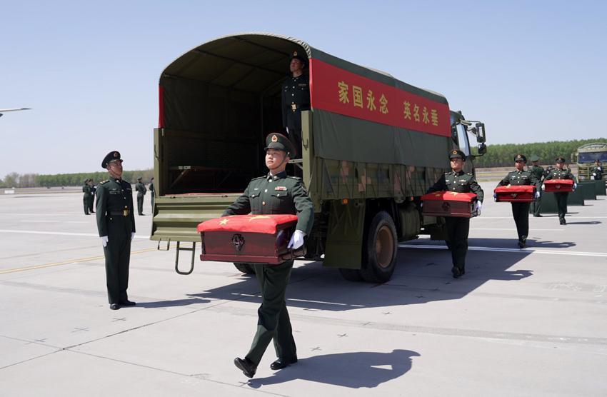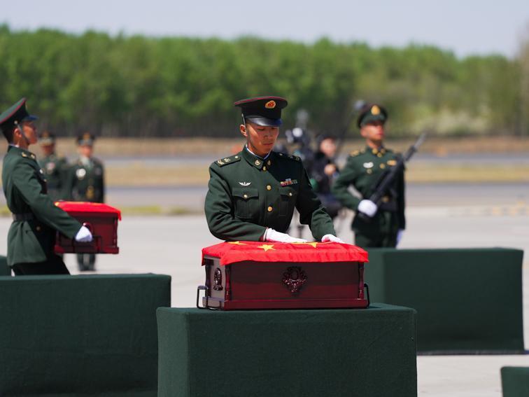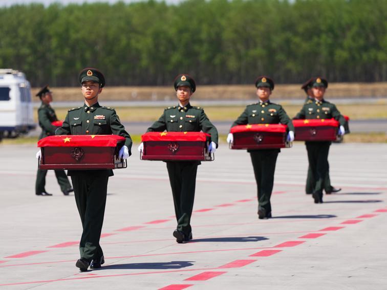人民网沈阳4月22日电 (记者邱宇哲、王子锋、汤龙、周颂雪)4月22日,第十三批12位在韩中国人民志愿军烈士遗骸及相关遗物由运-20B军用大型运输机接运回国,降落在沈阳桃仙国际机场。