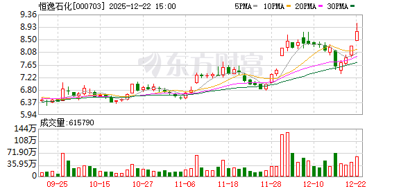 证券时报·数据宝统计显示,恒逸石化今日收盘价为8.79元,上涨6.03%,日换手率为1.72%,成交额为5.39亿元,全天主力资金净流入4330.90万元,近5日该股累计上涨6.80%,近5日资金合计净流出4686.03万元。