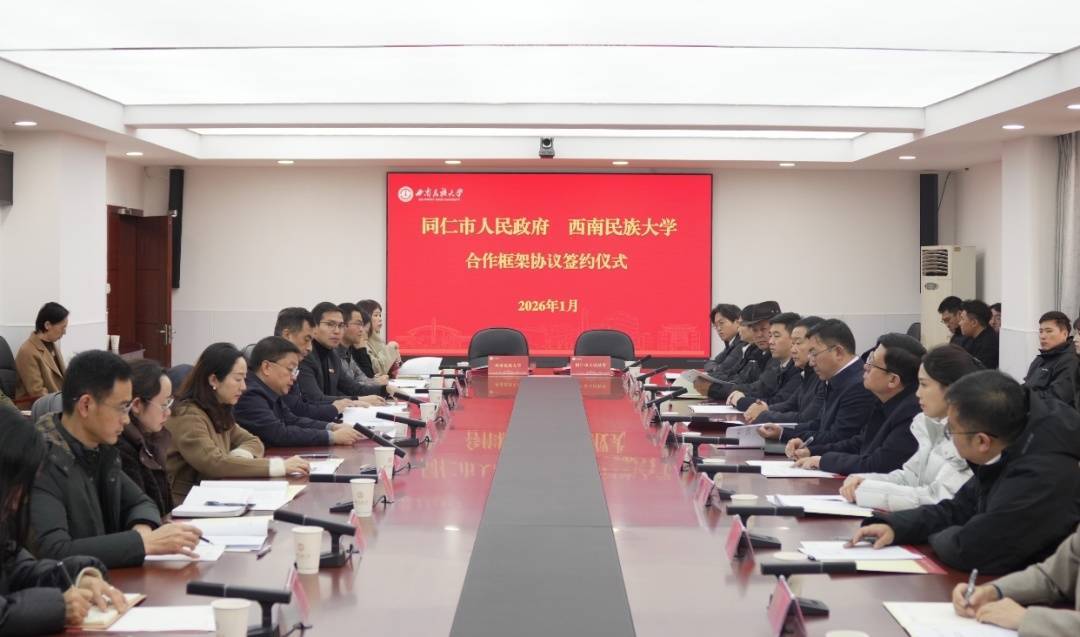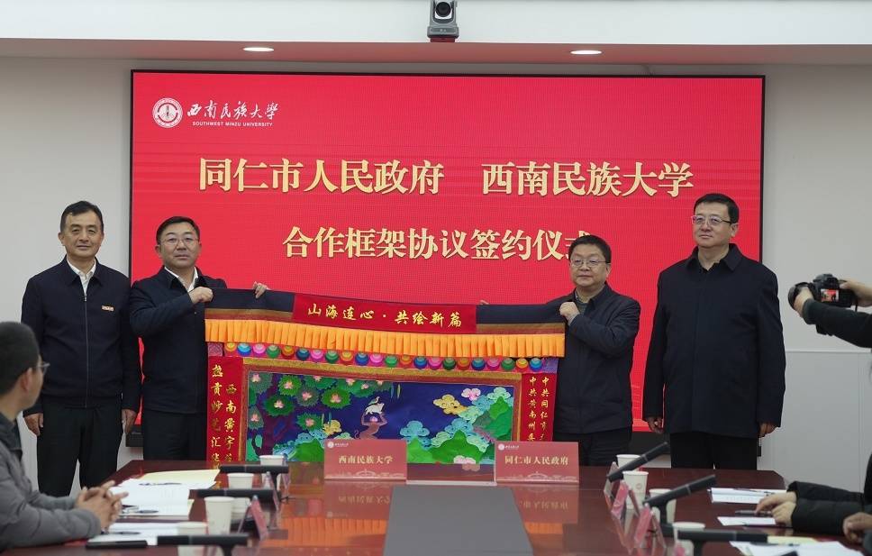 1月21日,同仁市人民政府与西南民族大学战略合作框架协议签约仪式在西南民族大学航空港校区举行。黄南州委常委、同仁市委书记何杰,西南民族大学党委常委、副校长乔俊杰出席并致辞,同仁市委副书记、市长赵建国出席,西南民族大学党委常委、副校长杜林出席并主持。