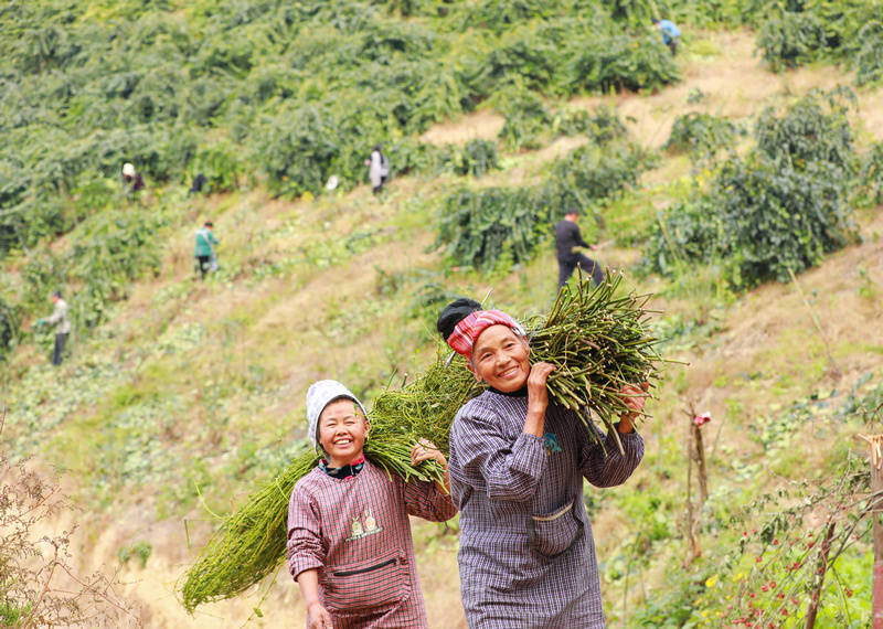 在省剑河县革东镇光条村,农户在搬运钩藤。剑河县融媒体中心供图