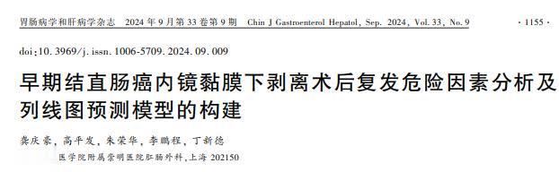 参考资料:[1]龚庆豪在线配资平台大全,早期结直肠癌内镜黏膜下剥离术后复发危险因素分析及 列线图预测模型的构建,胃肠病学和肝病学杂志,2024-09-20